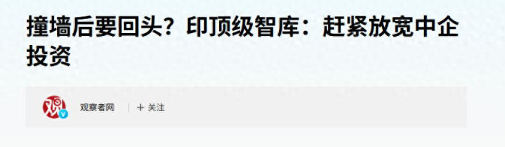 1.《撞墙后要回头?印顶级智库:赶紧放宽中企投资》2025年07月09日22:36| 来源:观察者网